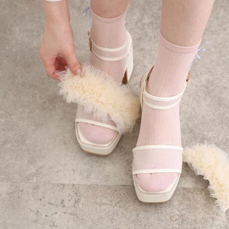 ラメドットのチュールメッシュ素材をふんだんに使用した、フェミギャルにおすすめの一足です。