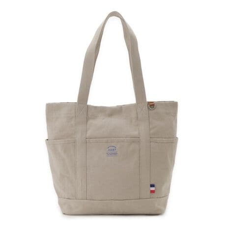 ・トリコカラーのネームがポイントのウォッシュキャンバストート
