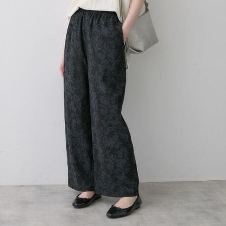夏らしい大柄のボタニカル柄が目を惹くイージーパンツ。