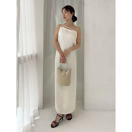 <b>【アシメデザインにモードな色気が香るサテンキャミワンピース】</b>