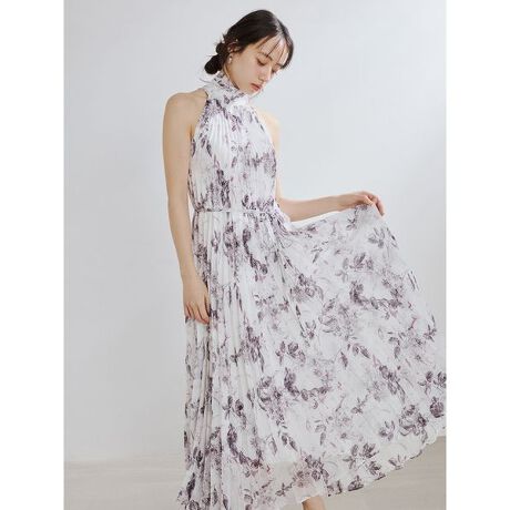 繊細なプリーツは、動くたびに軽やかに揺れ、女性らしいシルエットを演出します。