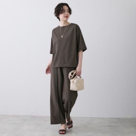 落ち感のあるジョーゼット素材を使用した、上品見えセットアップ。