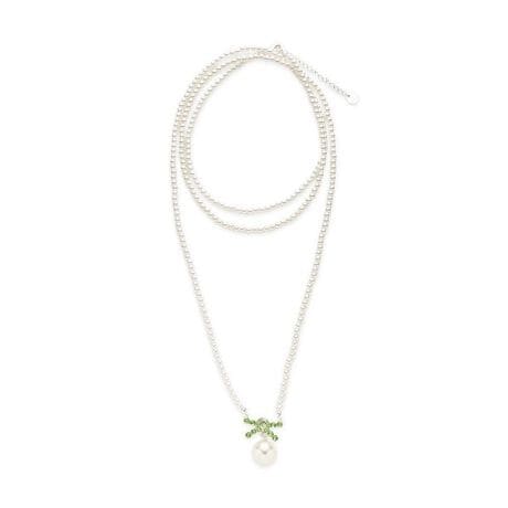 [L.B CANDY STOCK]ビジューリボンパールネックレス