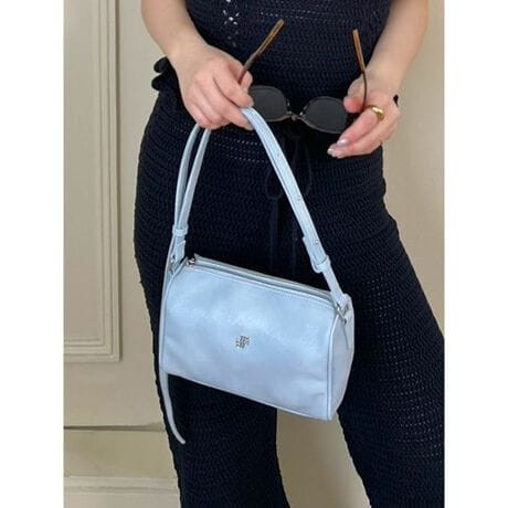 </b>フロントにあしらったオリジナルのロゴパーツがアクセントを添える、ミニマルなショルダーバッグ。ライトピンクとライトベージュはサテン調のシルキーな素材、ライトブルーはラメスエード、ブラックはラメエナメルと、カラーによって異なるシャイニーな質感を厳選しました。サイドの四角管には、お好みのチャームを付けて自分らしくカスタムすることも可能。ショルダーは調節穴を多めに設定しているため、その日の気分やスタイルに合わせて斜め掛けや肩掛けを自由に楽しめます。コンパクトなルックスながら、お財布やスマートフォンに加えてプラスアルファの小物が収まる、デイリーに最適な容量感も魅力です。