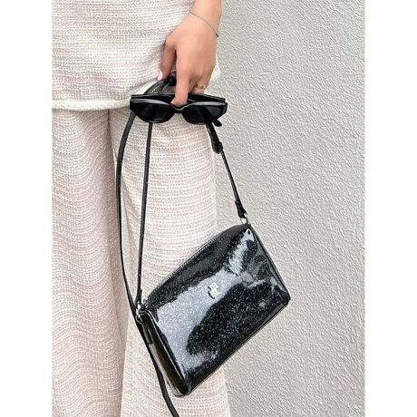 <b>【煌めくシャイニー素材とロゴパーツが映える、カスタム自在なミニショルダーバッグ】</b><b>