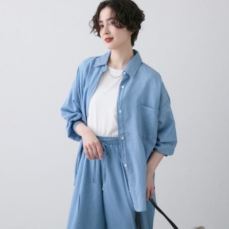 シャツやブラウス、ワンピースなど、デニムらしい表情を持ちつつ、柔らかくドレープ(揺れ感)の出るアイテムに適しており、春夏シーズンや軽やかなスタイルに最適な素材です。