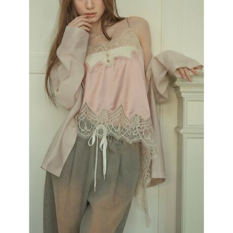 </b>インポートのランジェリーの手法を取り入れ、レースを贅沢に剥ぎ合わせたヴィンテージライクなキャミトップス。裾はイレギュラーヘムに仕上げ、動きのある軽やかなニュアンスを演出しました。一枚での着用はもちろん、Tシャツなどとレイヤードすれば、一気にトレンドライクな着こなしへと導きます。肩紐は長さ調整が可能なので、合わせるアイテムによって丈感をアレンジできるのも嬉しいポイント。同素材のスカート(品番:LWFS262084)と合わせて、ワンピース風に纏うセットアップスタイルもおすすめです。<b>