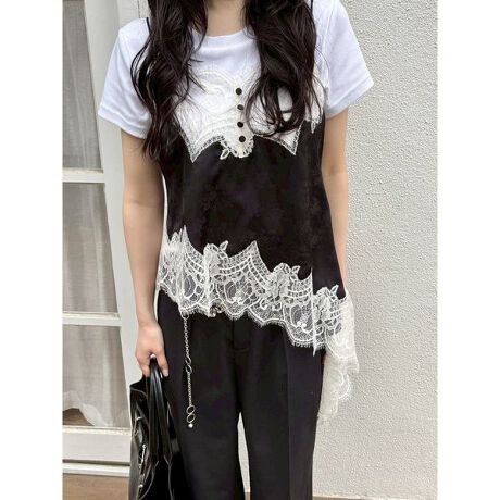 <b>【インポートランジェリーのような繊細なレース使いが光る、イレギュラーヘムキャミトップス】</b><b>