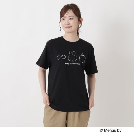 [型番:41015985]【デザイン】モノトーンのミッフィーのデザインで刺繍とプリントが施されたTシャツです。※洗濯表示は詳細画像をご確認ください。※照明の関係により、実際よりも色味が違って見える場合があります。また、パソコン・スマートフォンなどの環境により、若干製品と画像のカラーが異なる場合もございます。