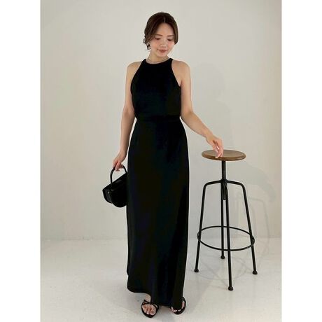 美しい落ち感のダブルクロス生地で仕立てた、シンプルなフロントと大胆なバックオープンデザインがモードなドレス。
