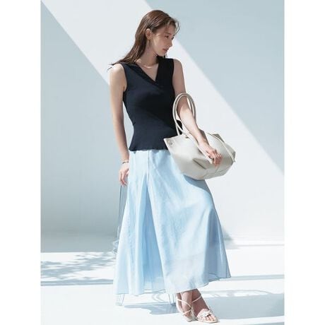 スカートは軽やかなで落ち感のある素材を使用し、歩くたびに美しく揺れるロング丈に。