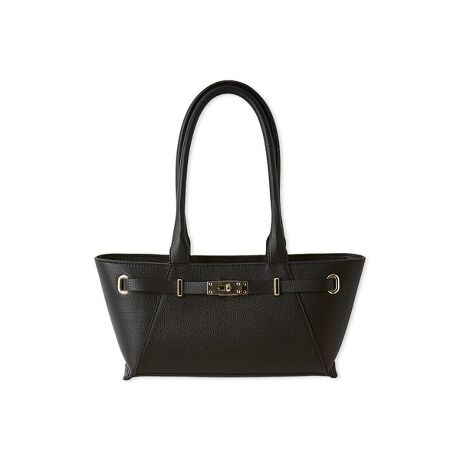 金具付きのベルトデザインでリュクスなアクセントを加えたトートバッグ。