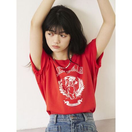 </b>Airlineのテーマに合わせた「Lily Bear」プリントを施したオーバーサイズTシャツ。インでもアウトでも着用しやすいサイズ感に仕上げました。カラーによって異なる表情を楽しめるのが特徴で、ホワイトとレッドはワンウォッシュ、ブラックはパウダー+硫化染め加工を施しています。<b>