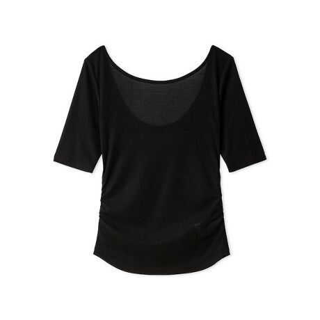 一見シンプルなシアーカットソートップスは、洒落た色気を加えるバックオープンデザインがポイント。