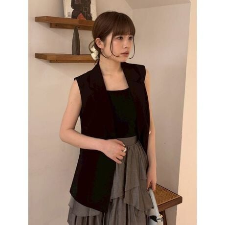<b>【マシンウォッシャブル・防シワ】【モードなシルエットで感度高く仕上げた2WAYシェイプジレ】</b>