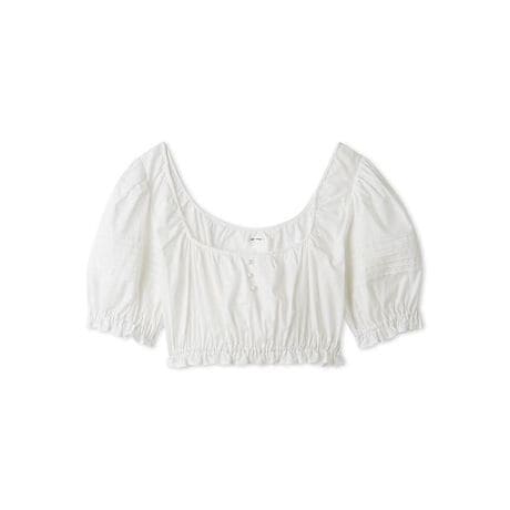 </b>ナチュラルな風合いの綿素材を使用し、ヴィンテージ感あふれる表情に仕上げたトップス。大胆なタッチで描かれた「ほぐし花」と、季節感のあるポルカドットを組み合わせたオリジナルのプリントが目を引きます。ふんわりとしたパフスリーブに対し、デコルテをすっきりと開けることで、女性らしく抜け感のある印象に。同素材のスカート(品番:LWFS262148)と合わせた、ワンピース風のセットアップスタイルもおすすめです。<b>