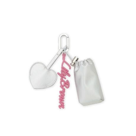 </b>キャッチーなハートのキーチャーム、実用的なリップケース、そしてニュアンスのあるアセチ素材のロゴパーツをセットにした、遊び心溢れるバッグチャーム。接続パーツは開閉可能なカラビナ仕様になっており、お好みに合わせてパーツを組み替えたり、単体でポーチや鍵に取り付けたりと自由自在なアレンジが楽しめます。リップケースは柔らかな巾着デザインを採用し、様々な形状のリップに対応。お手持ちのバッグにプラスするだけで一気に鮮度が高まる、ギフトにもおすすめのキャッチーなアイテムです。
