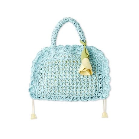 <b>【クロシェ風の編み地とラッフルが愛らしい、フラワーチャーム付きかごバッグ】</b><b>