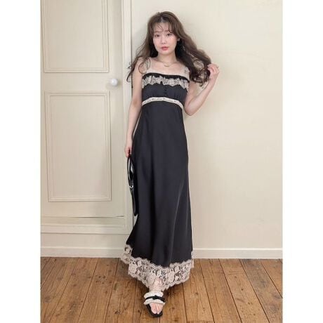 <b>【繊細な配色レースが美しく映える、ヴィンテージムードなサテンドレス】</b><b>