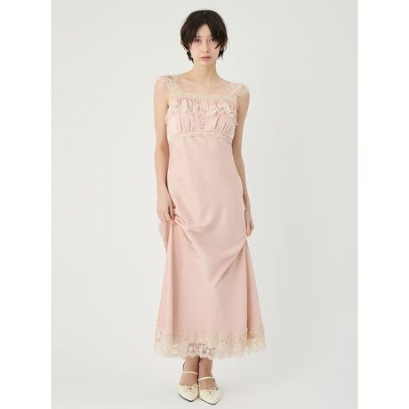 <b>【繊細な配色レースが美しく映える、ヴィンテージムードなサテンドレス】</b><b>