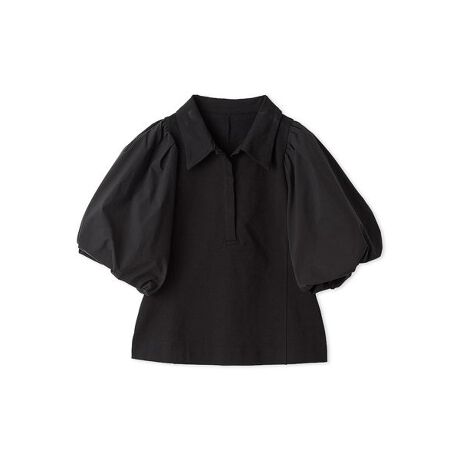 ふんわりとしたパフスリーブが華やかなトップスは、身頃をなめからなコットン天竺、袖を薄手でハリのあるタイプライターでお作りしたドッキングデザイン。
