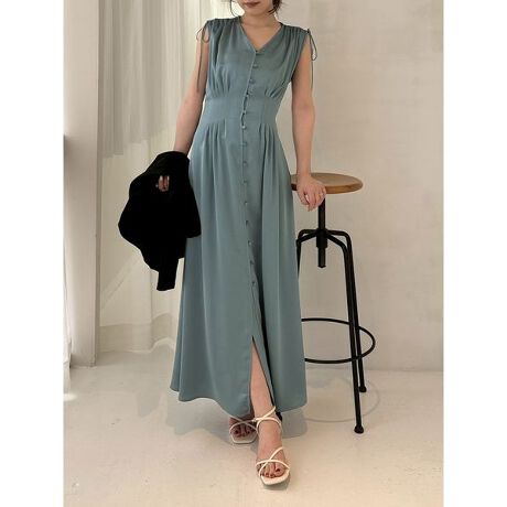 <b>【ハンドウォッシャブル】【ノーブルな装いが1枚で完成するタックサテンワンピ】</b>