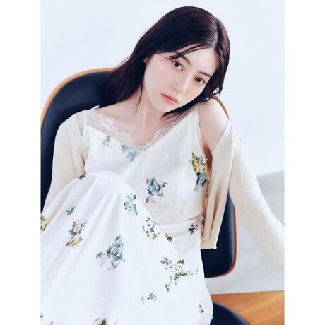 リブニットコンビティアードワンピース(FWNO262050)とセットアップ風のスタイリングが可能で、合わせて着用すると肩がチラッとのぞき上品な肌見せを叶えてくれます。