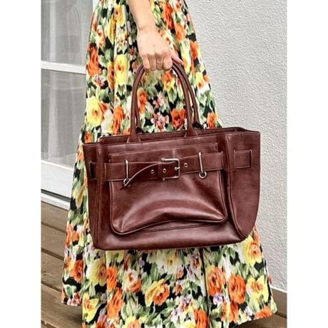 </b>フロントに配したハトメベルトとシルバーの金具使いが、モードなアクセントを添える「LILY BROWN」の新作トートバッグ。ベルトのサルカン部分には丸管を付けており、お好みのチャームを付けて自分らしくカスタムを楽しめる仕様に仕上げました。A4サイズがゆとりを持って収納でき、しっかりとしたマチでお弁当なども綺麗に収まる実用的なサイズ感も魅力。前胴と内側にポケットを備えた収納力の高さに加え、肩掛けでも手持ちでもバランス良く決まる絶妙なハンドルの長さにもこだわった、毎日の相棒にぴったりの一品です。