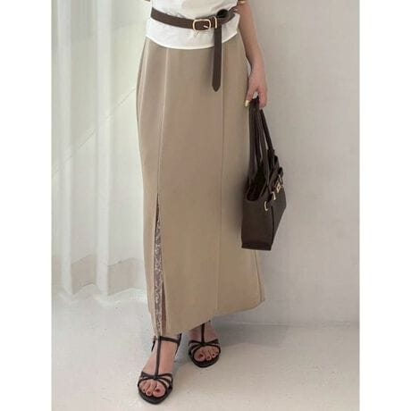 <b>【大人ならではの上品な色気を醸すレースレイヤードサテンスカート】</b>