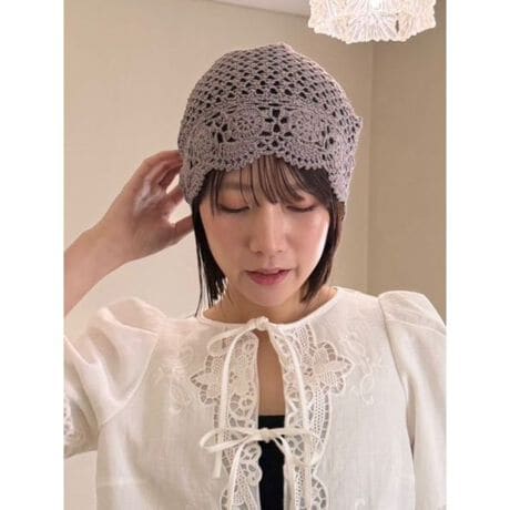 <b>【花柄スカラップが顔周りを彩る、かぎ針編みのコットンサマービーニー】</b><b>