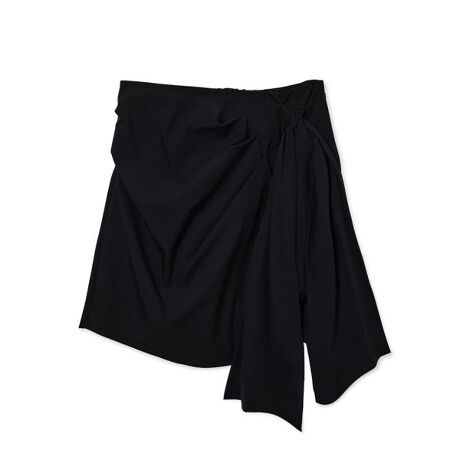 左脇に施した大胆なリボンディテールが目を引く、ラップスカートデザインのスカショーパン。