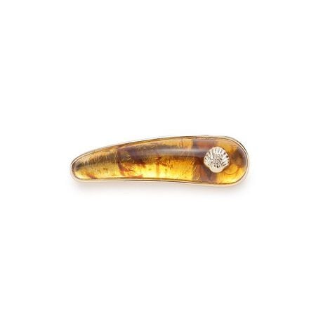 </b>今季トレンドのマリンスタイルをイメージしたバレッタ。つるんとした質感のアクリル素材に、繊細なゴールドフレームを組み合わせることで、遊び心がありながらも洗練された上品な印象に仕上げました。ゴールドのシェルモチーフには、ブランドのアイデンティティを感じる「LB」のモノグラムを印字。単品使いはもちろん、お手持ちのヘアピンとの重ね付けや、ヘアアレンジのアクセントにも最適で、取り入れるだけでヘアスタイルに季節感と華やかさを添えてくれるアイテムです。