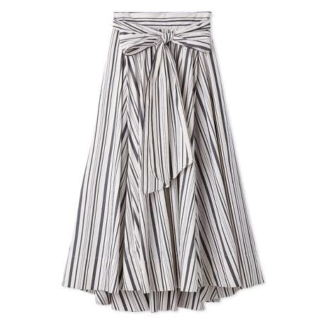 <b>【絵になる佇まいを叶えるライトタフタ素材のリボン付きスカート】</b>