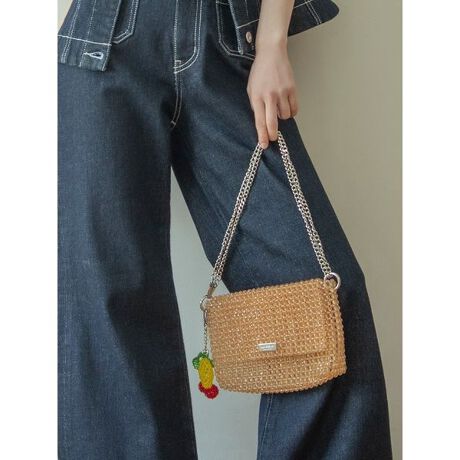 <b>【シアーな輝きとフルーツチャームに心躍る、アクセサリー感覚のビーズバッグ】</b><b>