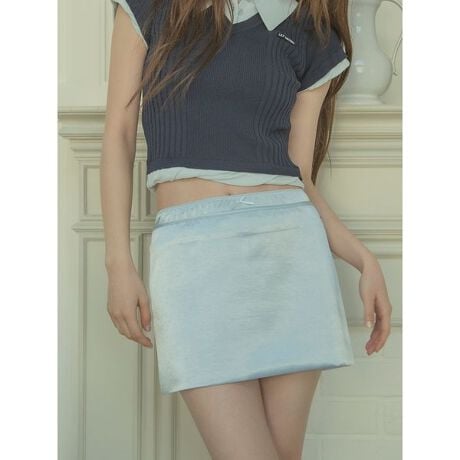 </b>程よい光沢感が上品なサテン素材を使用したミニスカショートパンツ。ウエストをゴム仕様にし、あえて腰履きのような低めの位置で着こなす新しいバランス感の一枚に仕上げました。ミニスカートの可愛らしさと、ショートパンツの安心感を両立したデザインが魅力です。<b>