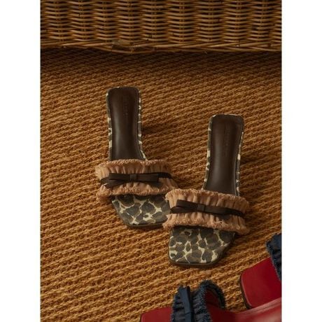 </b>たっぷりのフリンジディテールと、上品なサテンリボンが目を引く「LILY BROWN」らしいヴィンテージライクなリボンミュール。ふんわりとしたギャザーがロマンティックな表情を魅せる一方で、つま先はシャープなスクエアトゥに仕上げることで、甘すぎないモードなエッセンスをプラスしました。アイボリーとブラックを組み合わせたクラシックな「ブラック」、レッドとデニム素材がシーズンムードを盛り上げる「インディゴ」、レオパード柄とピンクの配色が甘辛な「ブラウン」の、個性豊かな3色展開。足元からスタイリングをクラスアップしてくれる一足です。
