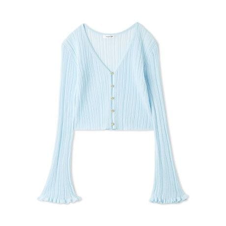 ラメが繊細にきらめくシアー素材を使用し、透明感と上品な華やぎを添えるカーディガン。