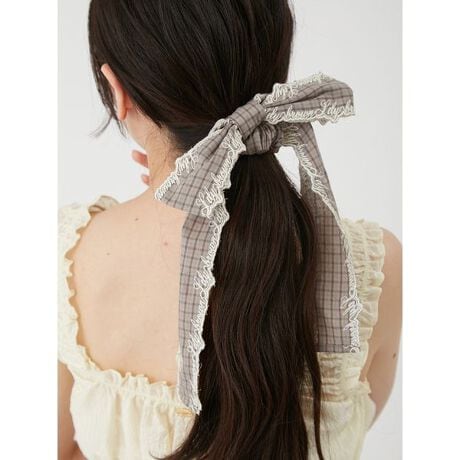 <b>【スカラップ刺繍と長いリボンが揺れる、大人フェミニンなロゴシュシュ】</b><b>
