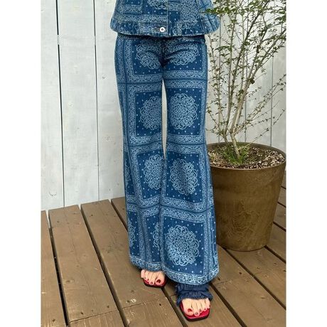 </b>秋冬シーズンに人気を博したストレートフレアデニムパンツが、春夏バージョンにアップデートして登場。好評の優れた伸縮性はそのままに、脚のラインがよりすっきりと美しく見えるよう細かなサイジングをミリ単位で調整しました。バックスタイルはレースアップ仕様になっており、デザインのアクセントとしてはもちろん、お好みに合わせてフィット感を高めることも可能。コンパクトなトップスをインすれば、レースアップが際立つ旬な着こなしが完成します。同素材のペプラムジャケット(品番LWFJ:262039)とセットアップで着用すれば、より一層のスタイルアップが期待できる一着です。<b>