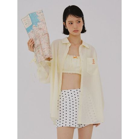</b>「LILY BROWN」定番のLily Bearシャツが、涼しげなシアーストライプ生地で登場。初登場となるワンカラー刺繍のLily Bearが、洗練された印象を与えます。オーバーすぎない絶妙なサイズ感にこだわり、夏の羽織としても抜け感を演出できる一着に仕上げました。同素材のシュシュがセットになっており、合わせて取り入れることでコーディネートをより華やかに格上げしてくれます。<b>