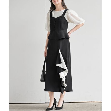 ペプラム配色ラッフルジャンスカ