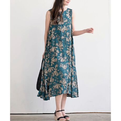 レーヨンプリントフレアーワンピース