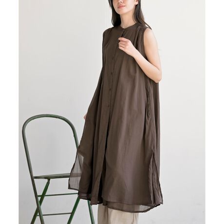 バンドカラーノースリーブシャツワンピース