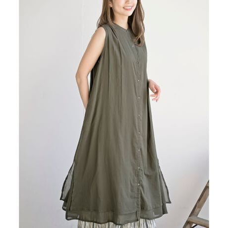 バンドカラーノースリーブシャツワンピース