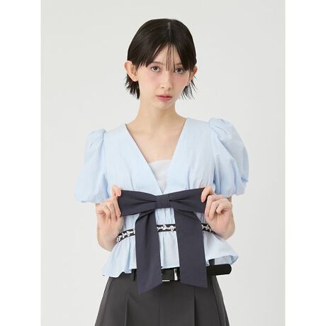 [L.B CANDY STOCK]ペプラムリボントップス