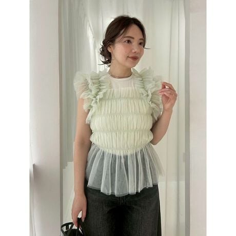 <b>【華やかさと心地よさを両立したチュールコンビカットトップス】</b>