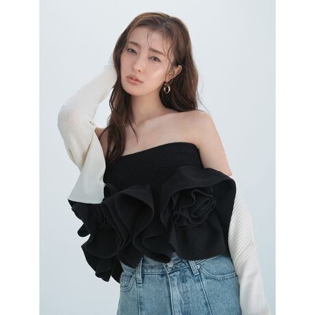 <b>【フラワーペプラムが目を引く主役級のニットベアトップス】</b>