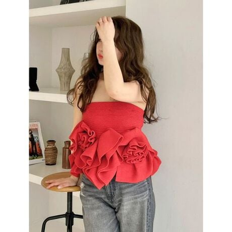大人気のペプラムニットベアトップスを、サマーデザインにアップデートしました。