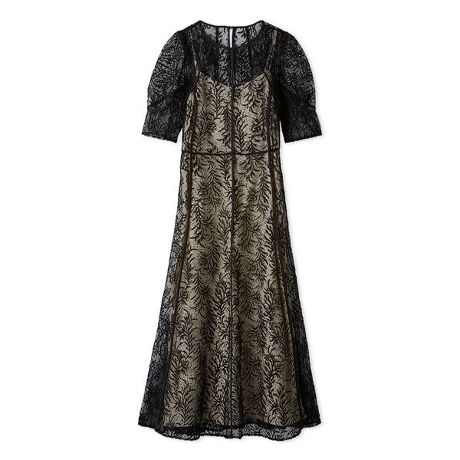 リーフ柄とスパンコールを刺繍したFRAY I.Dオリジナルのチュール生地がリュクスに映える、クチュール感のあるドレス。