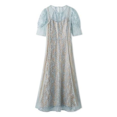 リーフ柄とスパンコールを刺繍したFRAY I.Dオリジナルのチュール生地がリュクスに映える、クチュール感のあるドレス。